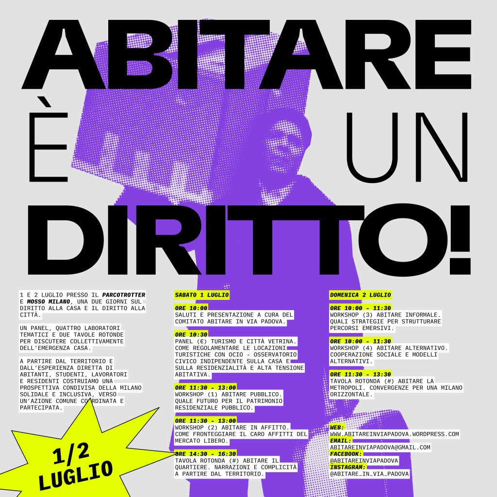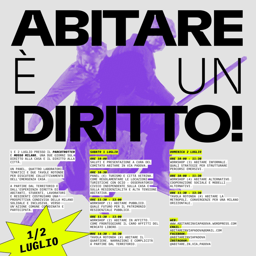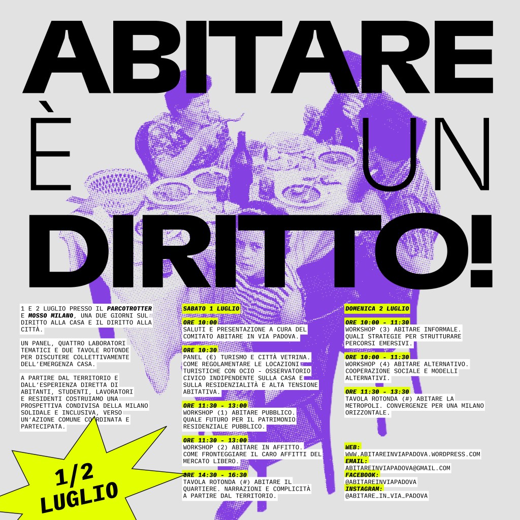 Di seguito trovate un resoconto, diviso per tavoli di lavoro, dei due giorni che durante il primo fine settimana di luglio hanno visto decine e decine di persone incontrarsi, confrontarsi e condividere orizzonti e pratiche per garantire a tutte e tutti il diritto all’abitare nella nostra città.