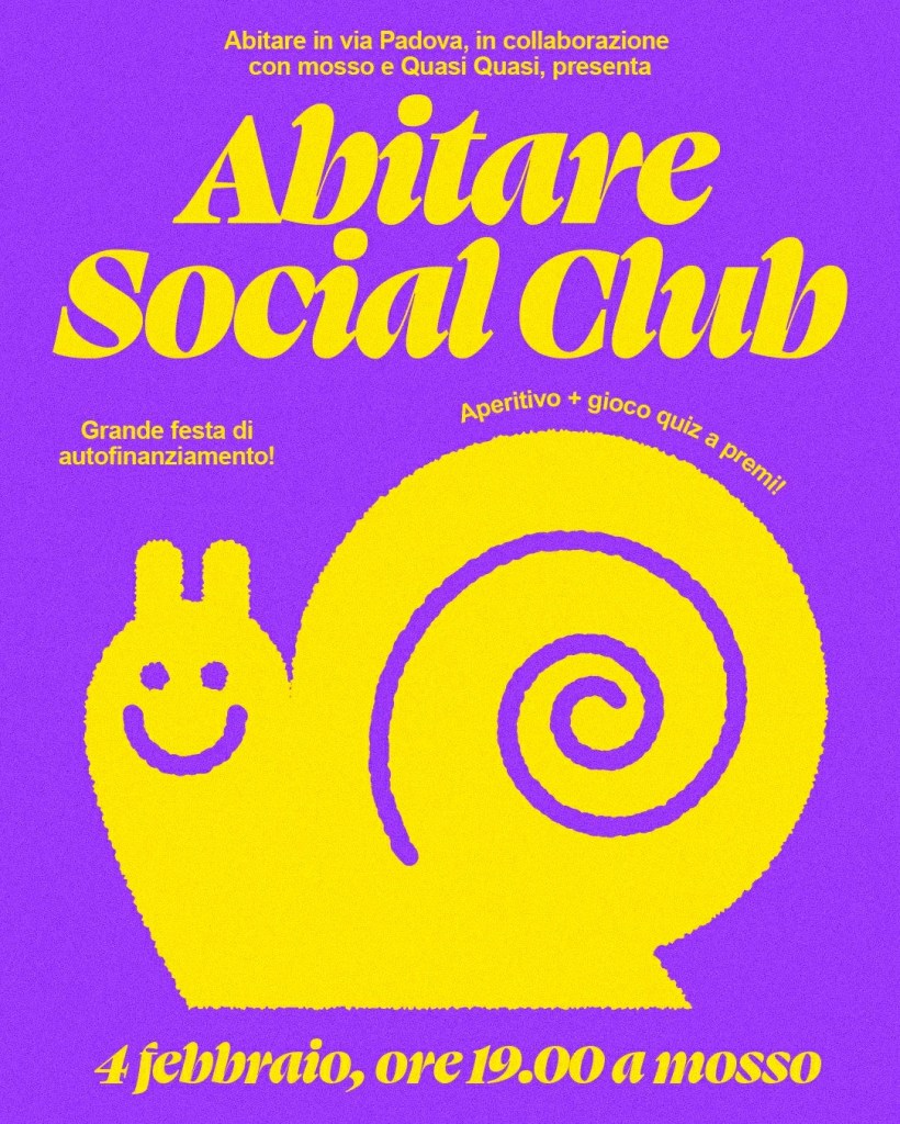 Per questo siamo liet* di invitarti al SUPER MEGA PARTY di autofinanziamento con ABITARE SOCIAL CLUB mercoledì 4 febbraio alle ore 19 a @mosso