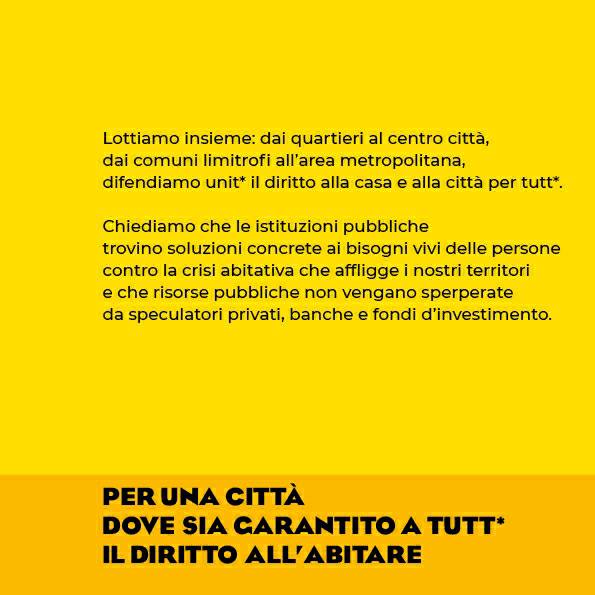 Non basta però risolvere il singolo caso: dobbiamo riuscire a mostrare – pretendendo di conseguenza politiche pubbliche coraggiose – quanto sia sempre più diffusa la convinzione che la casa non è una questione privata, ma un diritto fondamentale tanto per i singoli quanto per la società nel suo complesso, perché una città si regge sul contributo di tutte le persone che qui vivono, lavorano, studiano, intessono relazioni, costruiscono progetti di vita.