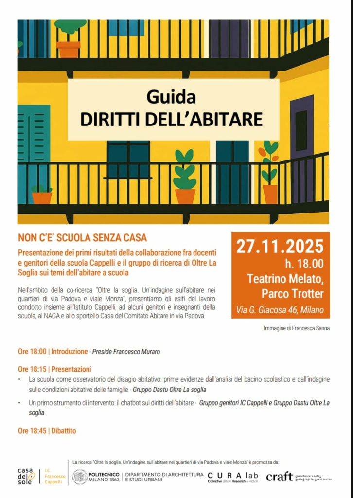 Non c’è scuola senza casa. Il 27 novembre al Trotter con il CURA Lab del Politecnico di Milano e la scuola e le famiglie del gruppo IC Cappelli. Noi ci saremo. E tu?